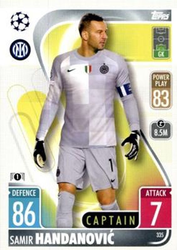 The Samir Handanovic 2021 Topps Match Attax Champions & Europa League #335 Base card is 1 of 2 Samir Handanovic's card variations in the 2021 Topps Match Attax Champions & Europa League set being tracked by Sports Card Investor, including Crystal.