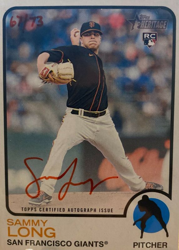 Sammy Long's Baseball cards are available in at least 6 sets. Sammy Long's biggest 7-day price movers are 2022 Topps Heritage #ROA-SL Real One Autographs - Red Ink /73, 2022 Topps Heritage #ROA-SL Real One Autographs, and 2022 Topps Triple Threads #RFPAR-SL Rookie & Future Phenoms Autographs Relics - Printing Plates Black /1.