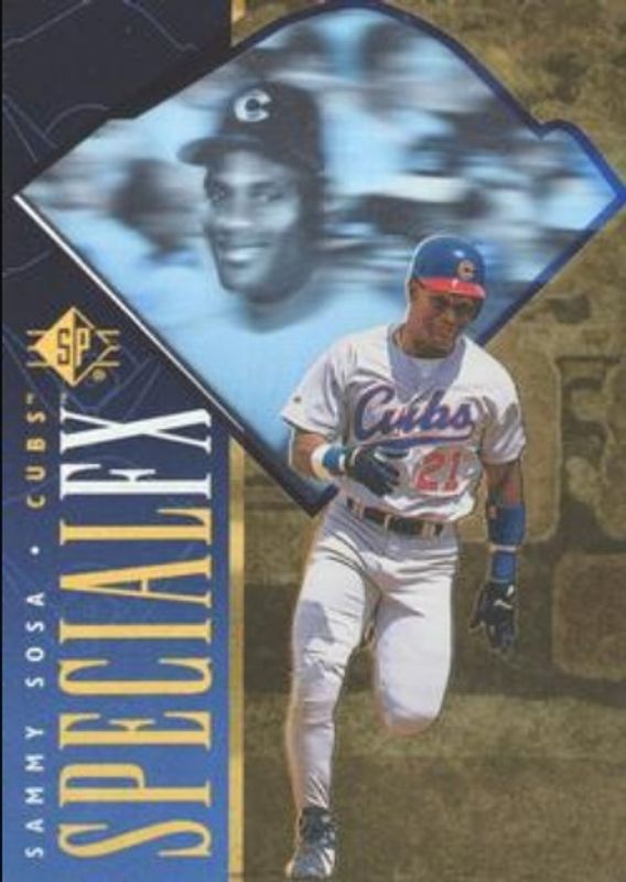 The Sammy Sosa 1996 SP #33 Special FX card is 1 of 6 Sammy Sosa's card variations in the 1996 SP set being tracked by Sports Card Investor, including Base, All Star Game Promos, Marquee Matchups, Marquee Matchups die-cut, and Special FX Red die-cut.