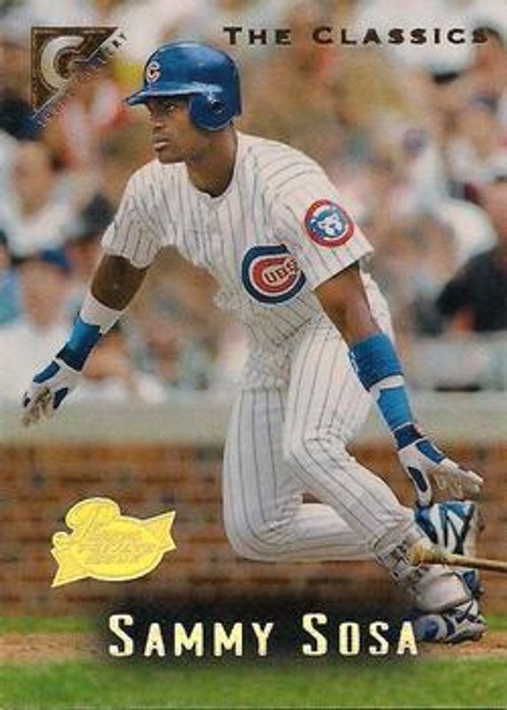 The Sammy Sosa 1996 Topps Gallery #17 Player's Private Issue /999 card is 1 of 3 Sammy Sosa's card variations in the 1996 Topps Gallery set being tracked by Sports Card Investor, including Base, and Expressionists.