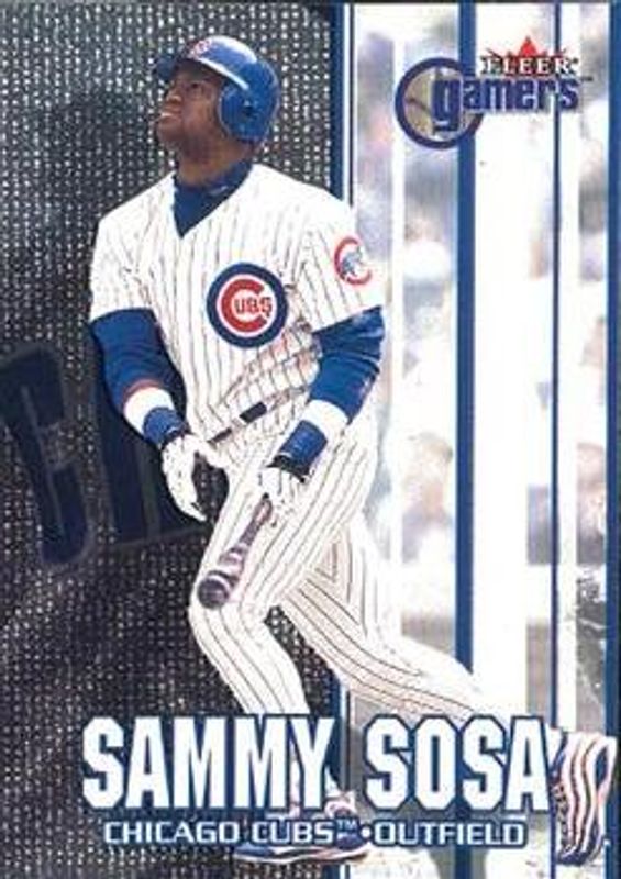 The Sammy Sosa 2000 Fleer Gamers #11 Base card is 1 of 6 Sammy Sosa's card variations in the 2000 Fleer Gamers set being tracked by Sports Card Investor, including #119 Base, #11 Extra, #119 Extra, #9CG Change the Game, and #8D Determined.