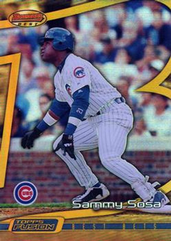 The Sammy Sosa 2001 Topps Fusion #211 Base card is 1 of 4 Sammy Sosa's card variations in the 2001 Topps Fusion set being tracked by Sports Card Investor, including #205 Base, #207 Base, and #223 Base.