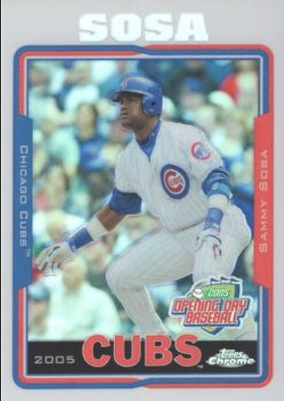The Sammy Sosa 2005 Topps Opening Day #ODC5 Chrome - Refractor card is 1 of 3 Sammy Sosa's card variations in the 2005 Topps Opening Day set being tracked by Sports Card Investor, including Base, and Chrome.