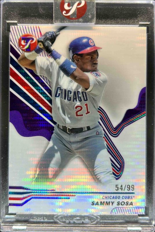 The Sammy Sosa 2024 Topps Pristine #7 Pristine Purple Refractor /99 card is 1 of 27 Sammy Sosa's card variations in the 2024 Topps Pristine set being tracked by Sports Card Investor, including Base, Pristine Refractor, Refractor, Green Refractor /150, and Purple Refractor /99.