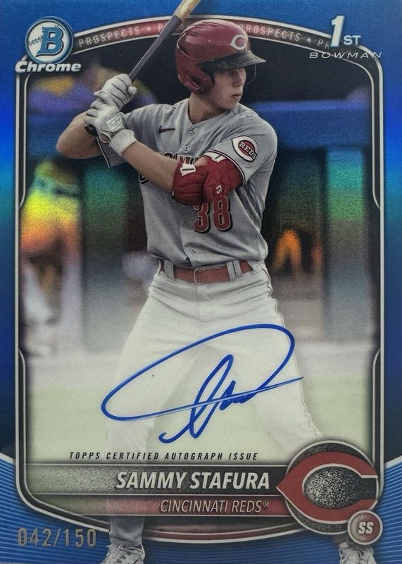 2025 Bowman Chrome Prospect Blue Refractor Sammy Stafura 1ST ROOKIE AUTO 064/150