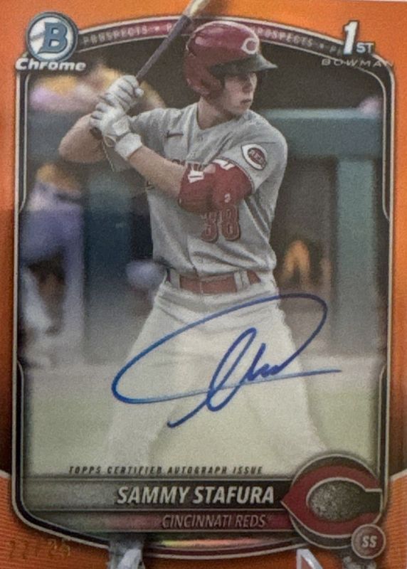 2025 Bowman Chrome Sammy Stafura 1st Auto Orange /25 Reds True Orange 1st Auto