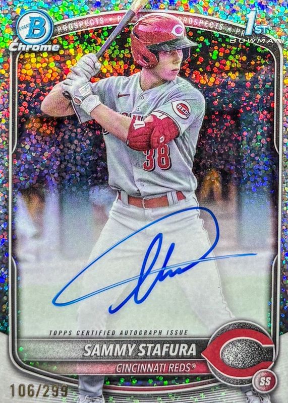 2025 Bowman Sammy Stafura 1st Chrome Auto Speckle /299 #CPA-SS Reds