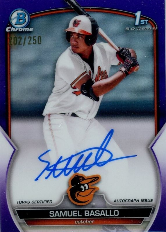 2023 Bowman Chrome Samuel Basallo #CPA-SB Purple Refractor Auto /250 Orioles