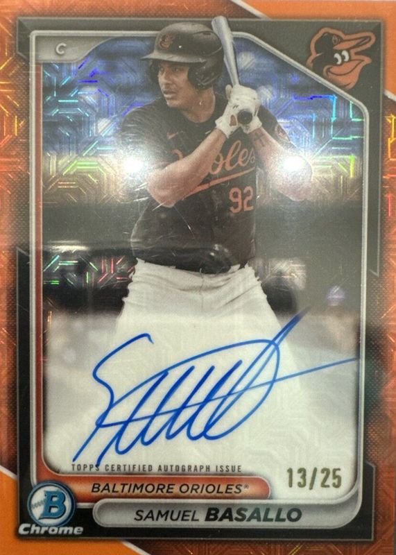 2024 Bowman Chrome Samuel Basallo /25 Orange Refractor Auto Mojo #BMA-SB Orioles