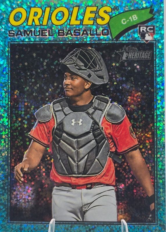 The Samuel Basallo 2026 Topps Heritage #175 Chrome - Aqua Sparkle Refractor Rookie card in Raw condition has moved up $3.01 (+151%) in the last 30 days and was last sold for $5.00 .