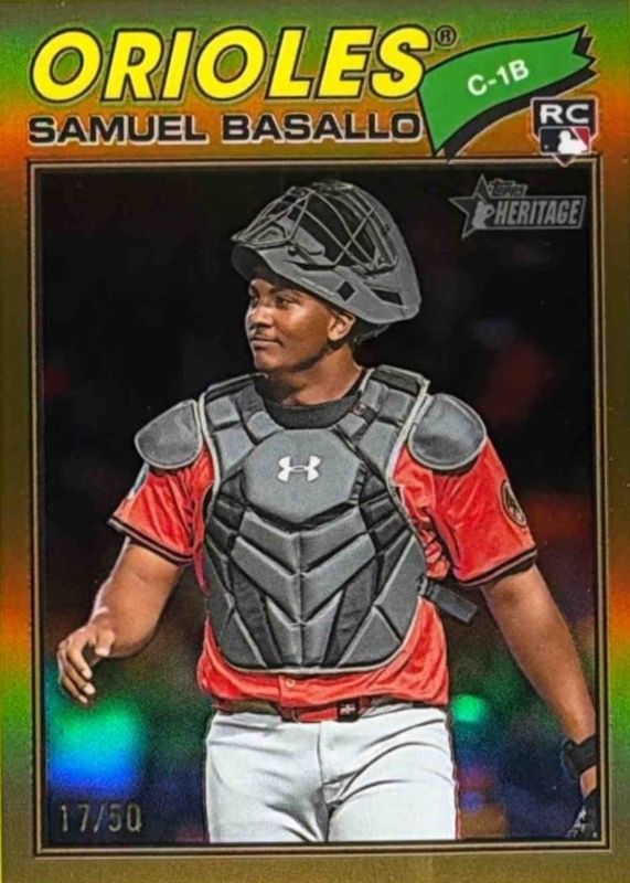 This card is 1 of 28 Samuel Basallo's card variations in the 2026 Topps Heritage set being tracked by Sports Card Investor, including Base, Chrome, Black Border, Chrome - Aqua Sparkle Refractor, and Chrome - Burgundy Sparkle Refractor.