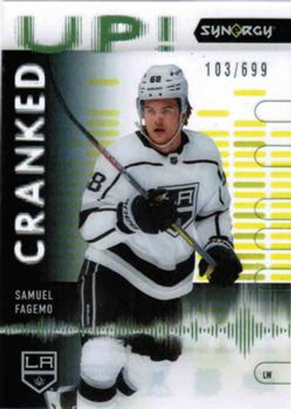 The Samuel Fagemo 2022 Upper Deck Synergy #CU-SF Cranked Up /699 Rookie card is 1 of 19 Samuel Fagemo's card variations in the 2022 Upper Deck Synergy set being tracked by Sports Card Investor, including Base /23, Red, Red Codes, Purple /49, and Gold /25.