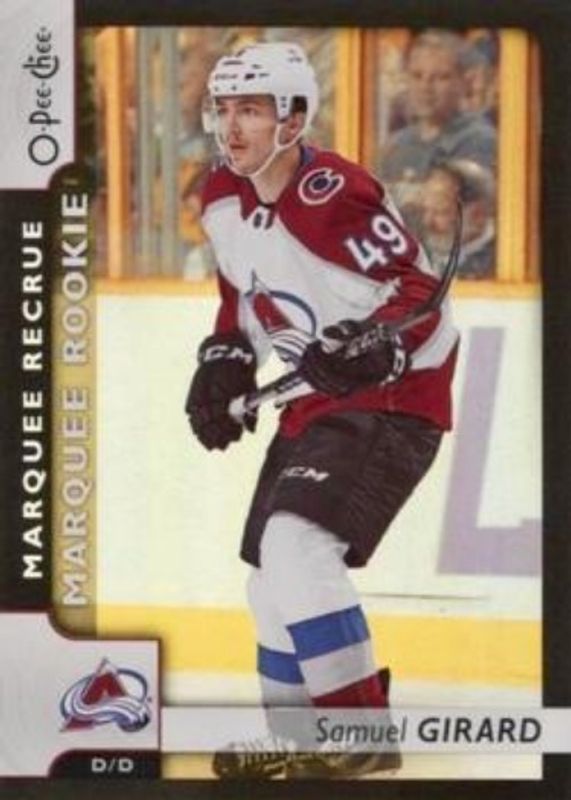 The Samuel Girard 2017 Upper Deck #629 2017 O-Pee-Chee Update Black - Rainbow Foil /100 Rookie card is 1 of 26 Samuel Girard's card variations in the 2017 Upper Deck set being tracked by Sports Card Investor, including Young Guns Base, Young Guns Canvas, Gold Rainbow Foil, Silver Foil, and Young Guns - Clear Cut.