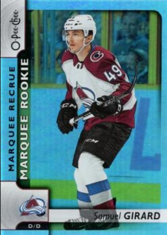 The Samuel Girard 2017 Upper Deck #629 2017 O-Pee-Chee Update - Rainbow Foil Rookie card is 1 of 26 Samuel Girard's card variations in the 2017 Upper Deck set being tracked by Sports Card Investor, including Young Guns Base, Young Guns Canvas, Gold Rainbow Foil, Silver Foil, and Young Guns - Clear Cut.