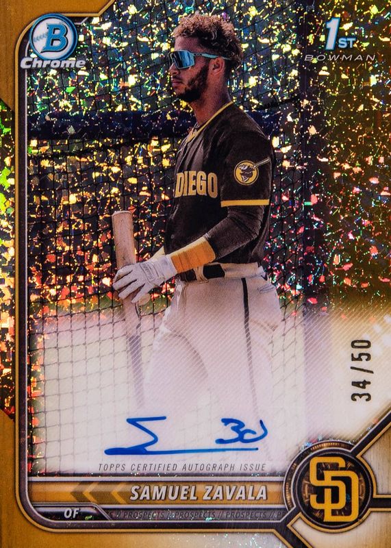 Samuel Zavala 2022 Bowman Chrome #CPA-SZ Prospect Auto - Gold Mini-Diamond Refractor /50 (1st) RAW Price Guide