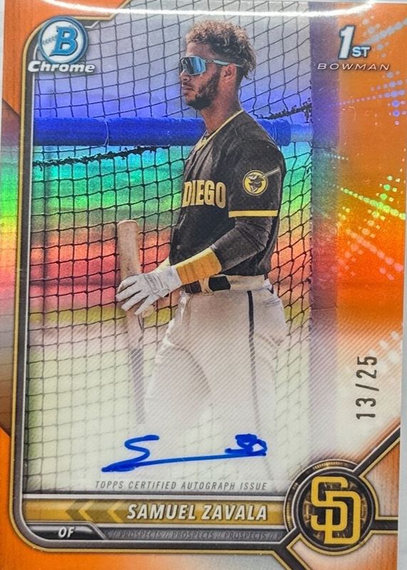Samuel Zavala 2022 Bowman Chrome #CPA-SZ Prospect Auto - Orange Refractor /25 (1st) RAW Price Guide