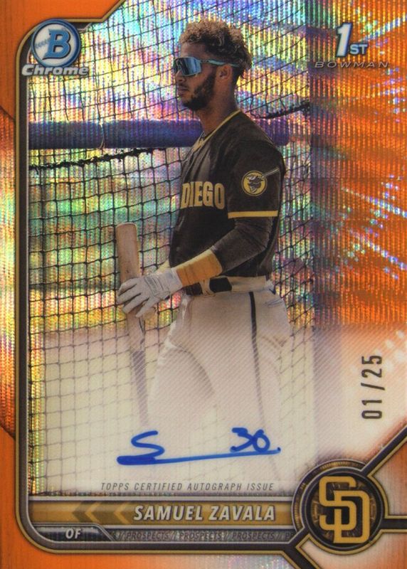 Auctions Ending Soon for Samuel Zavala 2022 Bowman Chrome #CPA-SZ Prospect Auto - Orange Wave Refractor /25 (1st) RAW