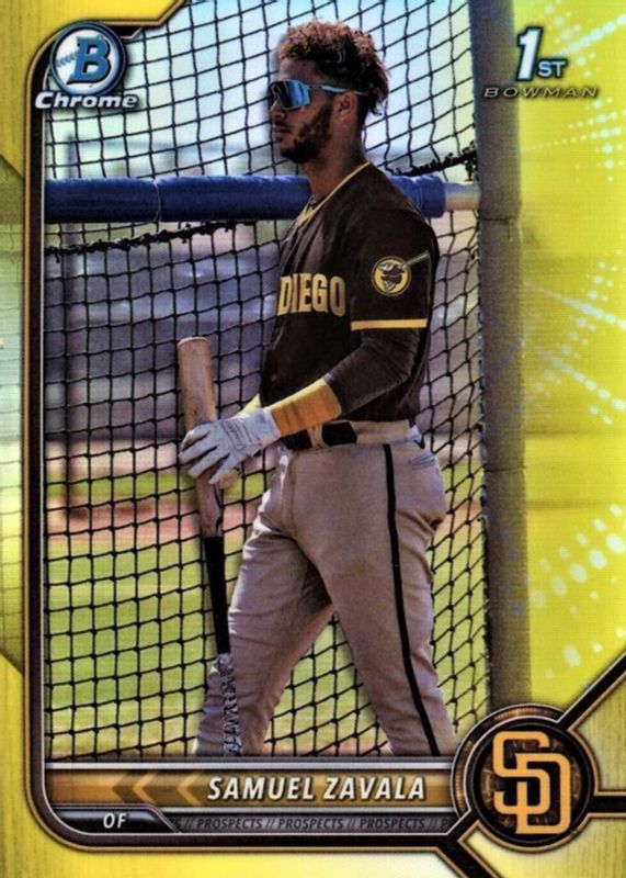 Best Prices Available For Sale of Samuel Zavala 2022 Bowman Chrome #BCP-203 Prospects - Yellow Refractor /75 (1st)