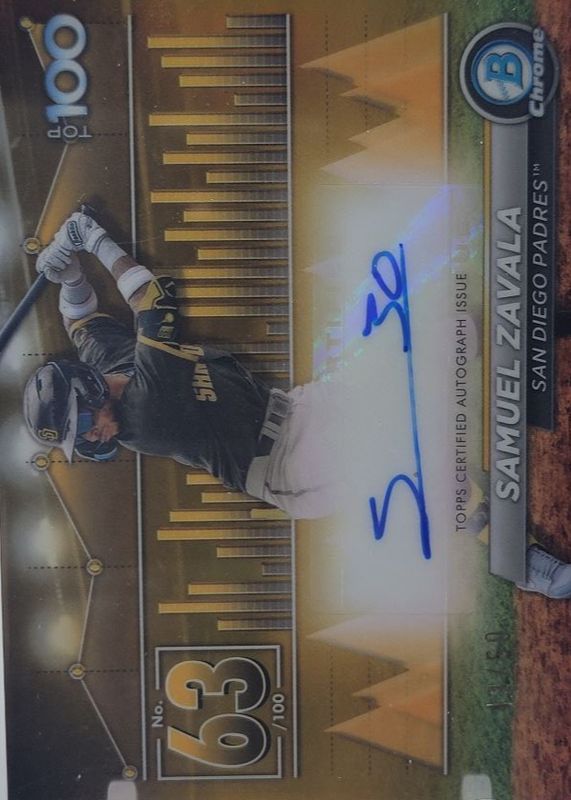 Best Prices Available For Sale of Samuel Zavala 2024 Bowman #BTPA-63 Bowman Scouts' Top 100 Autographs - Gold Refractor /50