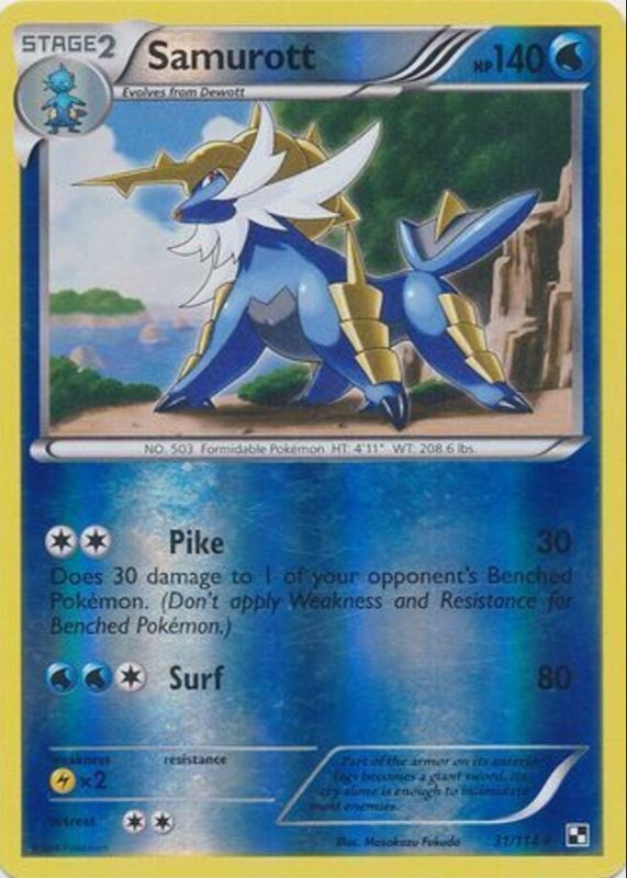 Samurott 2011 Black & White #031/114 Reverse Holo RAW TCG (LIGHTLY PLAYED) Price Guide
