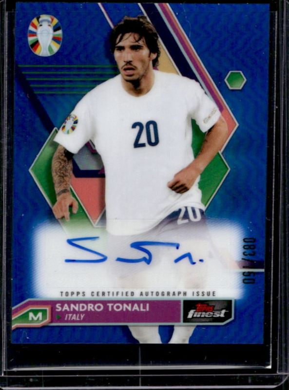 Sandro Tonali 2023 Topps Finest Road to UEFA Euro #BCA-ST Card Autographs - Blue Refractor /150 RAW Price Guide