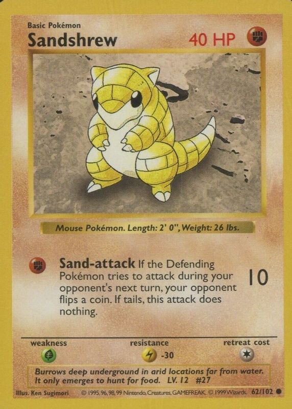 Best Prices Available For Sale of Sandshrew 1999 Pokemon Game #62 Shadowless