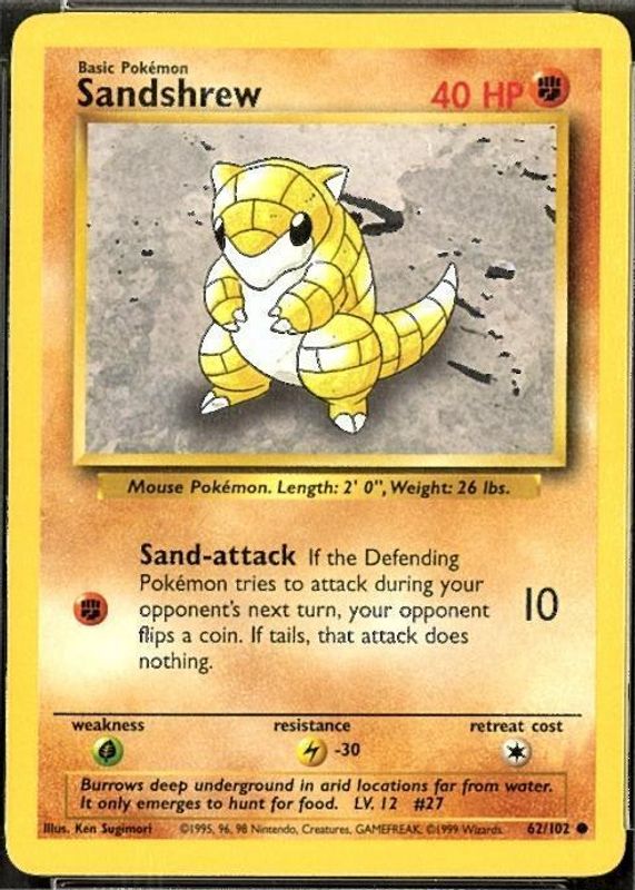 Sandshrew #62/102 Base Set 1999 TCG NM/LP Pokemon TCG