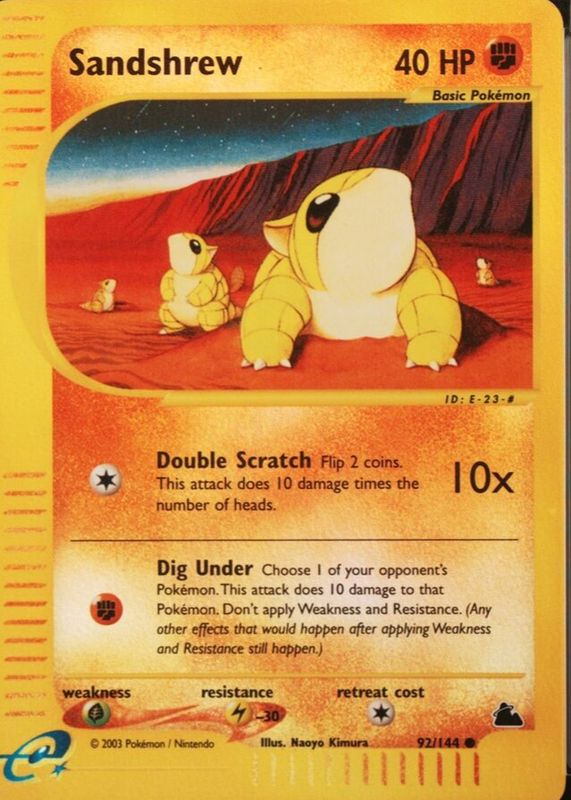 Sandshrew 2003 Skyridge #092/144 Reverse Holo RAW TCG (NEAR MINT) Price Guide