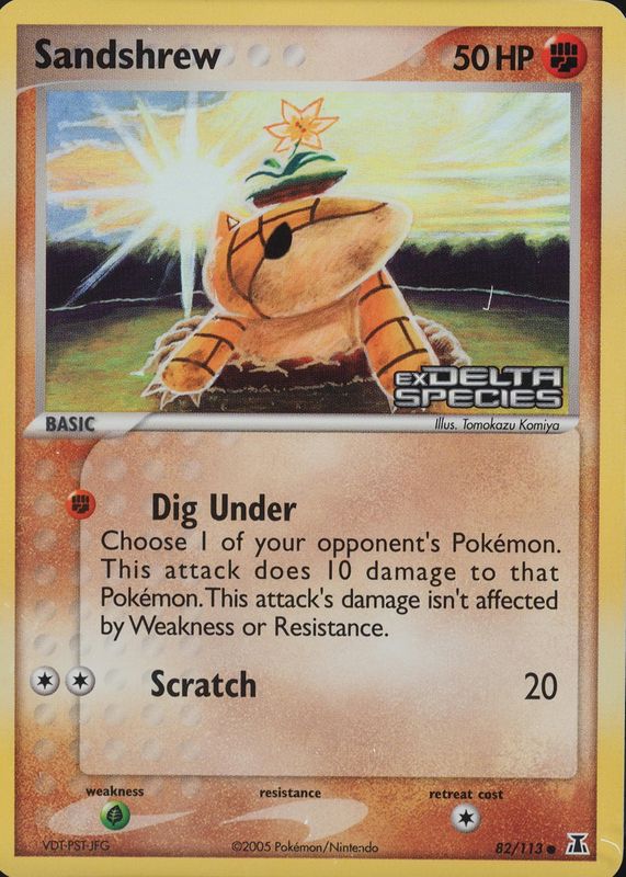 The Sandshrew 2005 EX: Delta Species #082/113 Reverse Holo card in Raw TCG (Near Mint) condition has moved up $5.00 (+33.3%) in the last 30 days and was last sold for $20.00 .