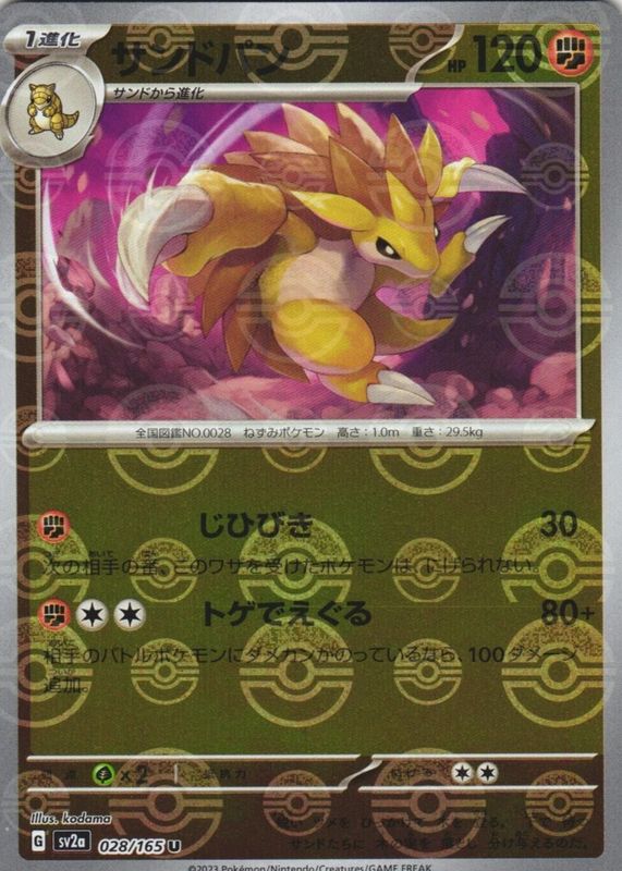 Sandslash 028/165 Near Mint Pokeball Reverse Holo 151 Japanese Pokemon SV2a 2023