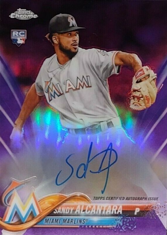 2018 Topps Chrome Sandy Alcantara Purple Refractor /250 Rookie Auto #RA-SA🔥