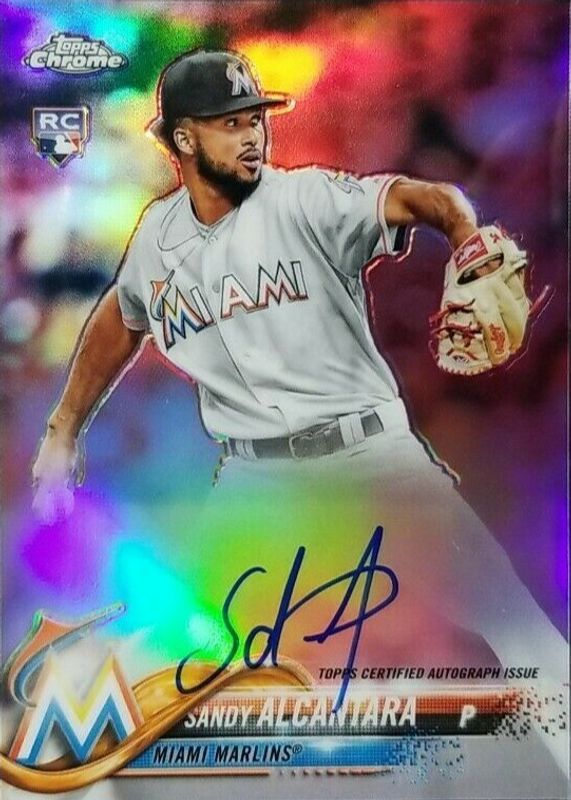 2018 Topps Chrome Rookie Auto Sandy Alcantara #RA-SA Refractor /499 (AU, RC)