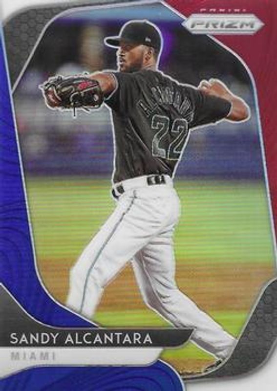 The Sandy Alcantara 2020 Prizm #133 Red White Blue card is 1 of 37 Sandy Alcantara's card variations in the 2020 Prizm set being tracked by Sports Card Investor, including Base, Blue, Carolina Blue, Cosmic Haze, and Green.