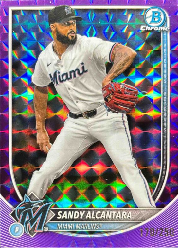 Sandy Alcantara 2025 Bowman Chrome #48 Purple Geometric Refractor /250 RAW Price Guide