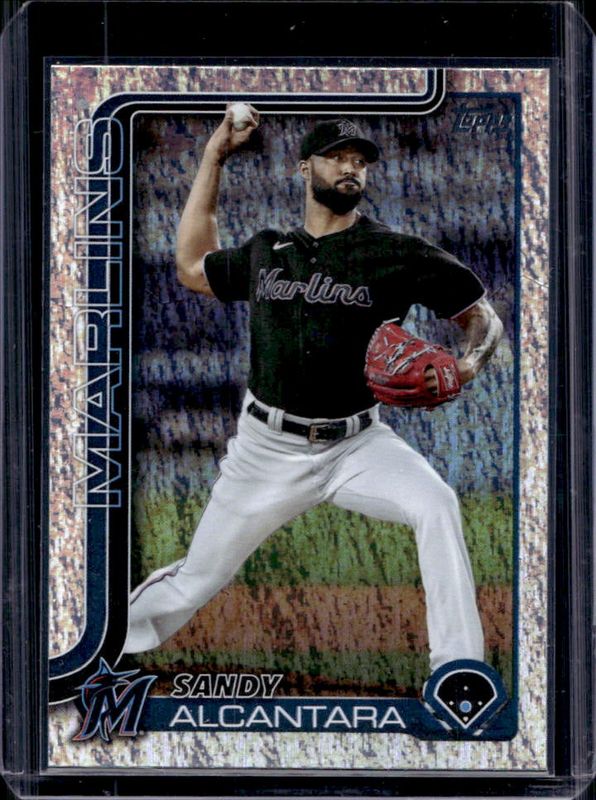The Sandy Alcantara 2025 Topps #335 Silver Crackle Foilboard card is 1 of 64 Sandy Alcantara's card variations in the 2025 Topps set being tracked by Sports Card Investor, including Base, Aqua Holo Foil, Diamante Foil, Holo Foil, and Pink Diamante Foil.