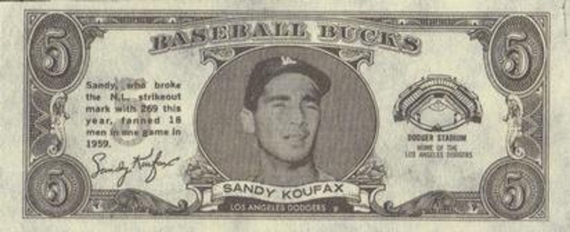 Sandy Koufax 1962 Topps Baseball Bucks Base RAW Price Guide