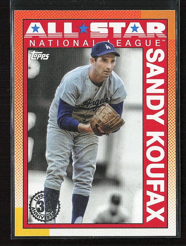 The Sandy Koufax 2025 Topps #90AS-46 All-Star card is 1 of 57 Sandy Koufax's card variations in the 2025 Topps set being tracked by Sports Card Investor, including 1990 Baseball All-Star Autographs (Series 2), 1990 Baseball All-Star - Pink, 1990 Baseball Autographs (Series 1), 1990 Baseball Chrome Silver Pack All Stars Autographs, and 1990 Chrome Baseball All-Star Silver Pack.