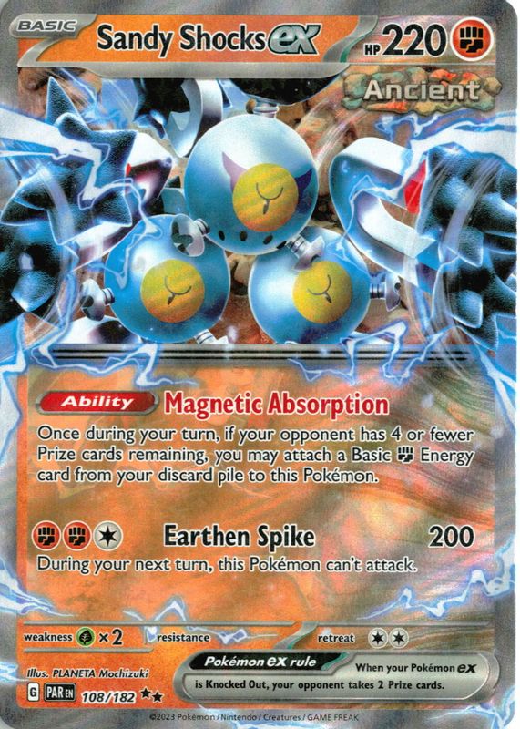 The Sandy Shocks ex 2023 Scarlet & Violet: Paradox Rift #108/182 Double Rare card in Raw TCG (Near Mint) condition has moved up $0.54 (+43.2%) in the last 30 days and was last sold for $1.79 .