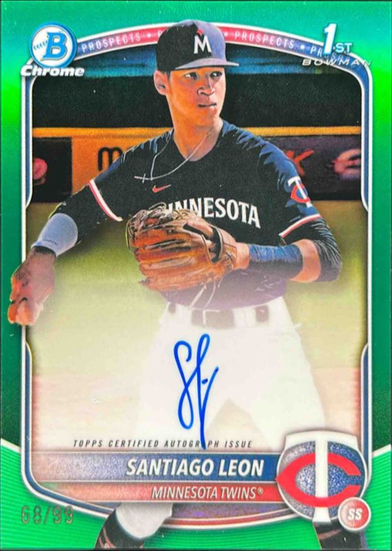 2025 Bowman Chrome Santiago Leon Auto Green Refractor 1st Prospect #/ 99 Twins