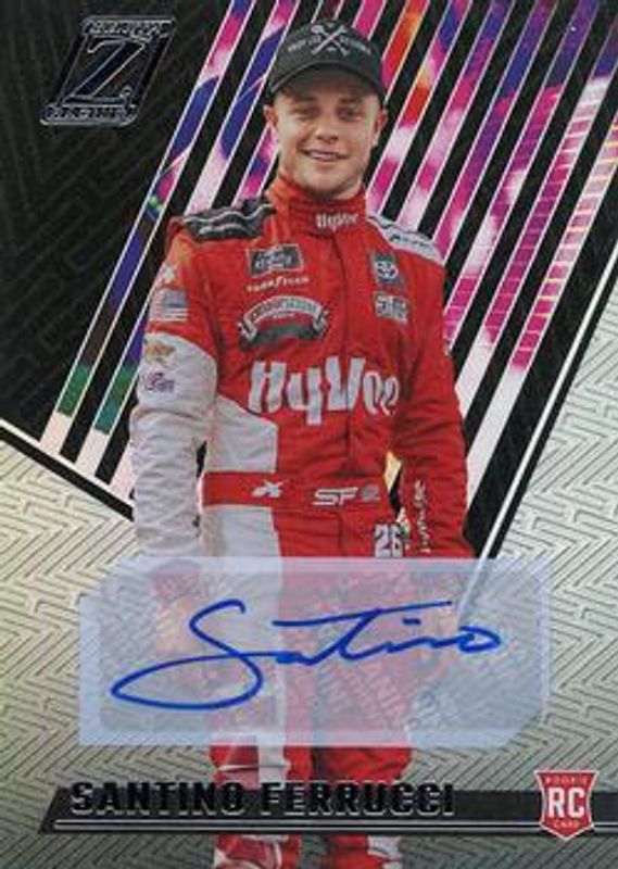 The Santino Ferrucci 2022 Chronicles NASCAR #19 Zenith Autographs card is 1 of 66 Santino Ferrucci's card variations in the 2022 Chronicles NASCAR set being tracked by Sports Card Investor, including Clearly Donruss, Clear Vision, Magnitude, Obsidian, and Obsidian Signatures.