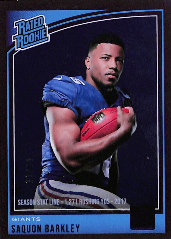 2018 Saquon Barkley Rated Rookie /99 Panini Donruss Season Stat Line Eagles