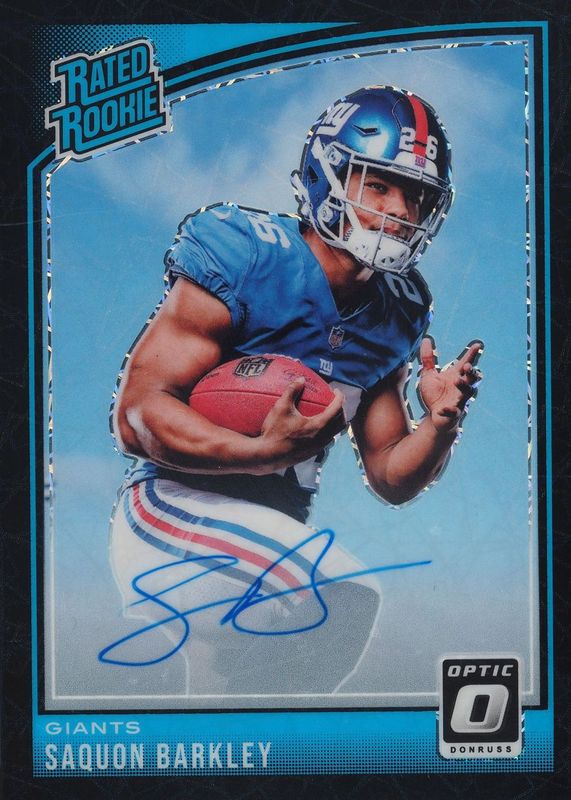 Saquon Barkley 2018 Optic #156 Rated Rookie Autographs - Black Velocity /25 RAW Price Guide