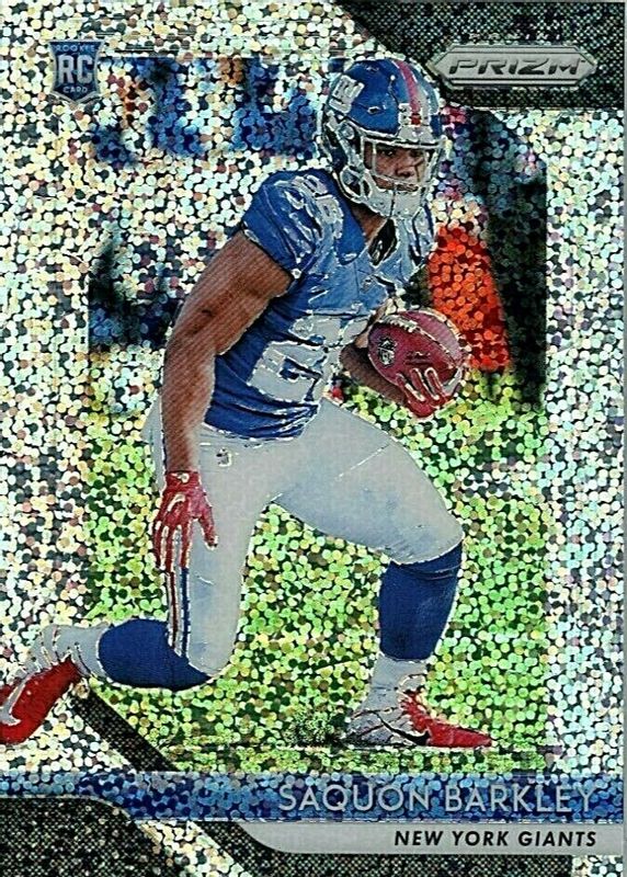 This card is 1 of 52 Saquon Barkley's card variations in the 2018 Prizm set being tracked by Sports Card Investor, including Base, Disco, Green, Lazer, and Neon Green Pulsar.