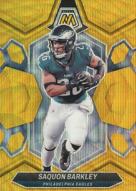 This card is 1 of 25 Saquon Barkley's card variations in the 2024 Mosaic set being tracked by Sports Card Investor, including Choice Peacock /(SSP), Genesis /(SSP), Honeycomb /(SSP), Red Sparkle /(SSP), and White Sparkle /(SSP).