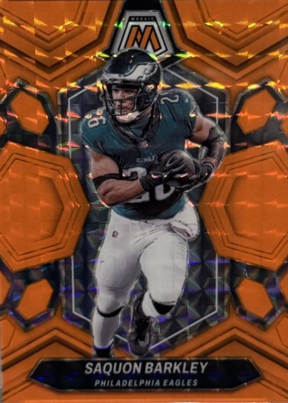 Auctions Ending Soon for Saquon Barkley 2024 Mosaic #177 Orange Fluorescent /25 RAW