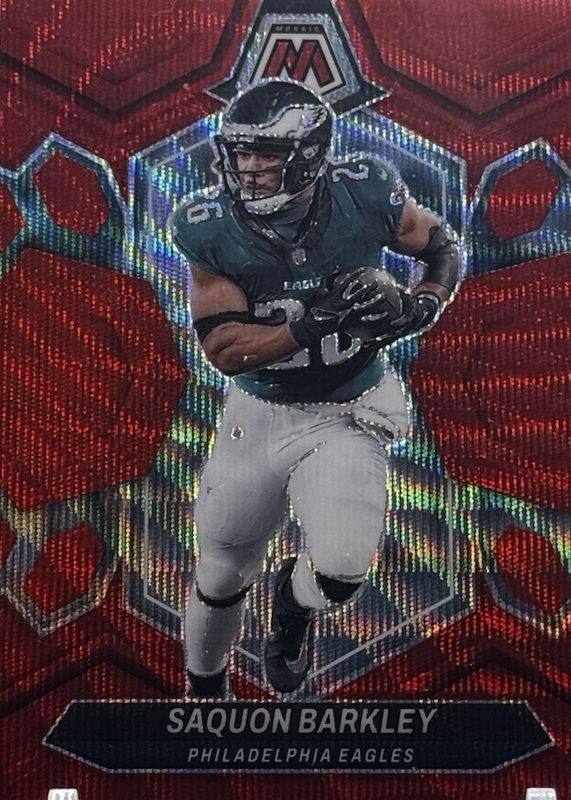 Auctions Ending Soon for Saquon Barkley 2024 Mosaic #177 Red Wave /9 RAW