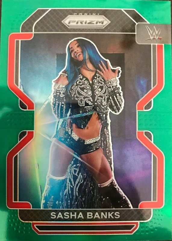 The Sasha Banks 2022 Prizm WWE #102 Green card in Raw condition has moved down -$5.99 (-85.7%) in the last 30 days and was last sold for $1.00 .