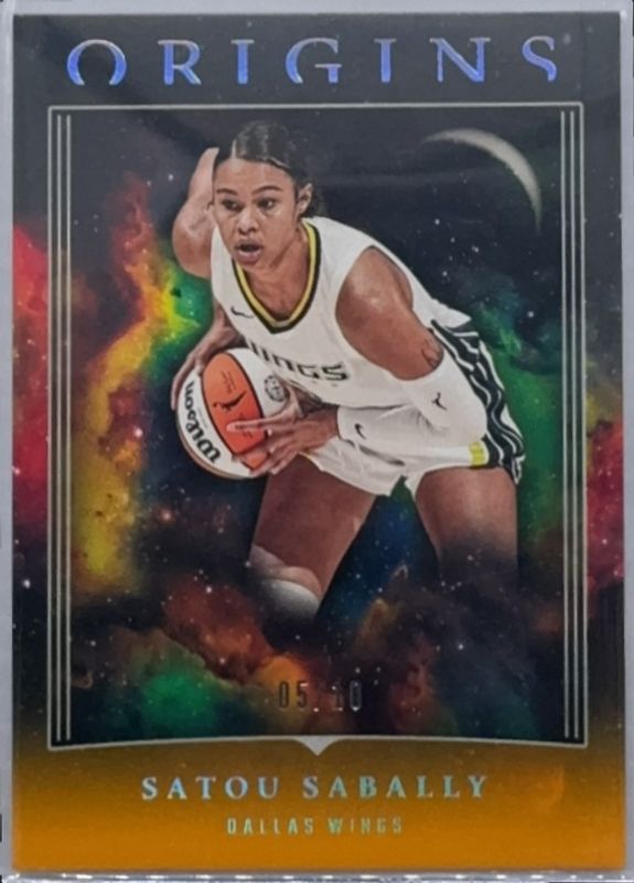 The Satou Sabally 2024 Origins WNBA #21 Gold /10 card is 1 of 27 Satou Sabally's card variations in the 2024 Origins WNBA set being tracked by Sports Card Investor, including Base, Red /99, Blue /75, Swirl /(SSP), and Teal /49.
