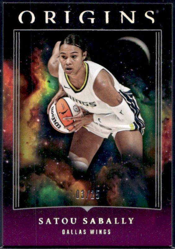 The Satou Sabally 2024 Origins WNBA #21 Purple /25 card is 1 of 27 Satou Sabally's card variations in the 2024 Origins WNBA set being tracked by Sports Card Investor, including Base, Red /99, Blue /75, Swirl /(SSP), and Teal /49.