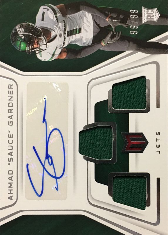 Sauce Gardner 2022 Chronicles #MJA-AHG Momentum Triple Jersey Autographs (/99) Rookie RAW Price Guide